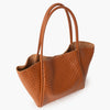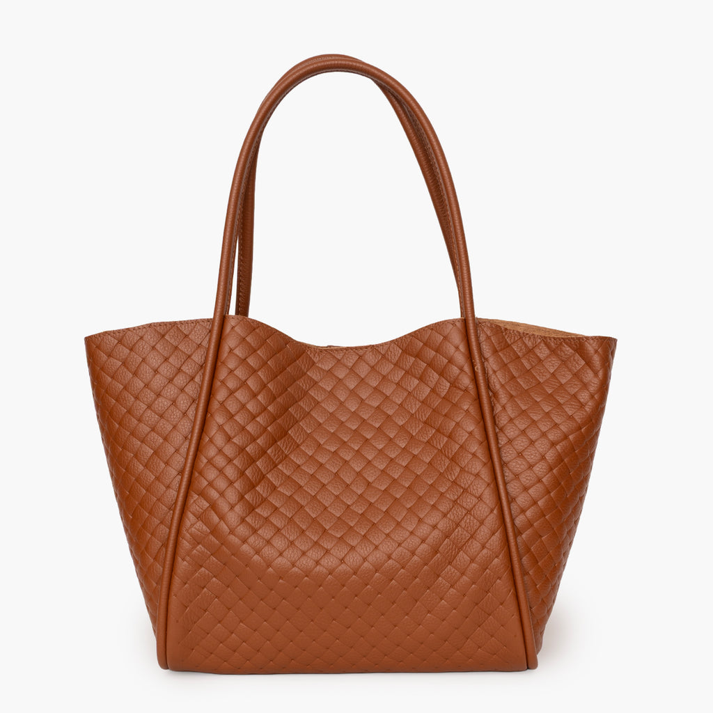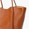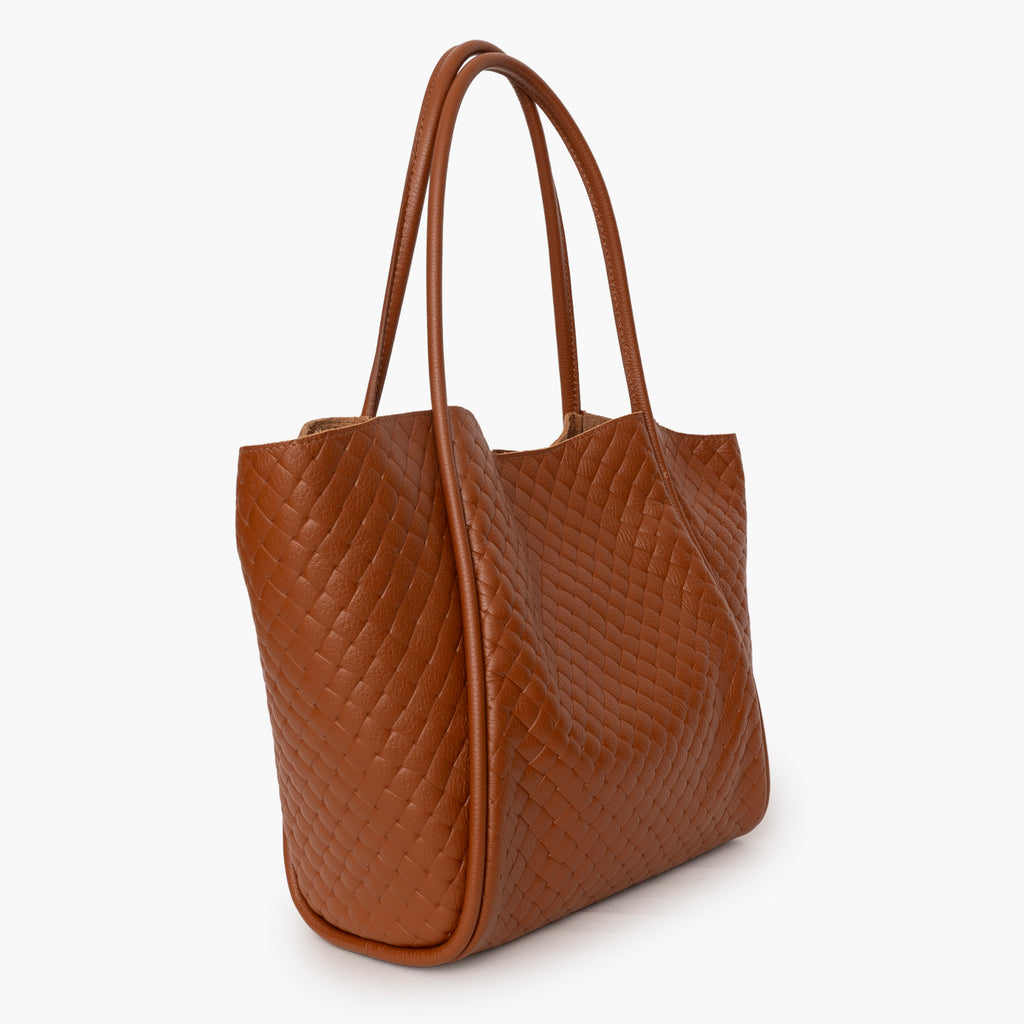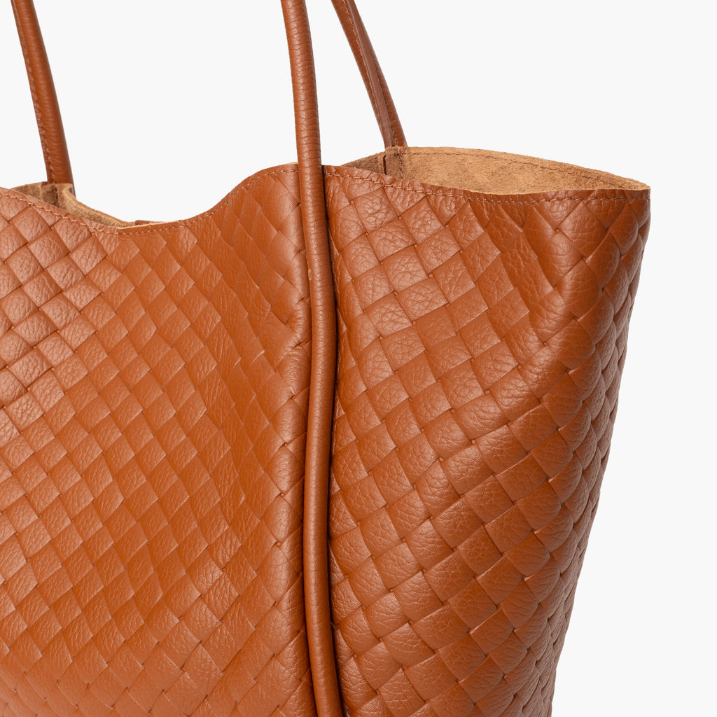 Shopping bag de piel con grabado trenzado en color cuero.