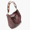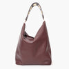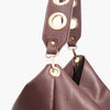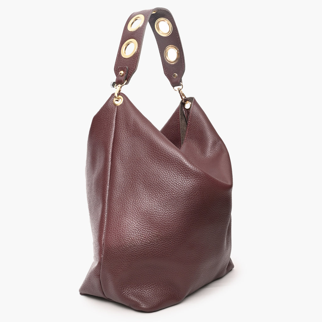 Bolso saco de piel graneada color burdeos.