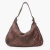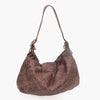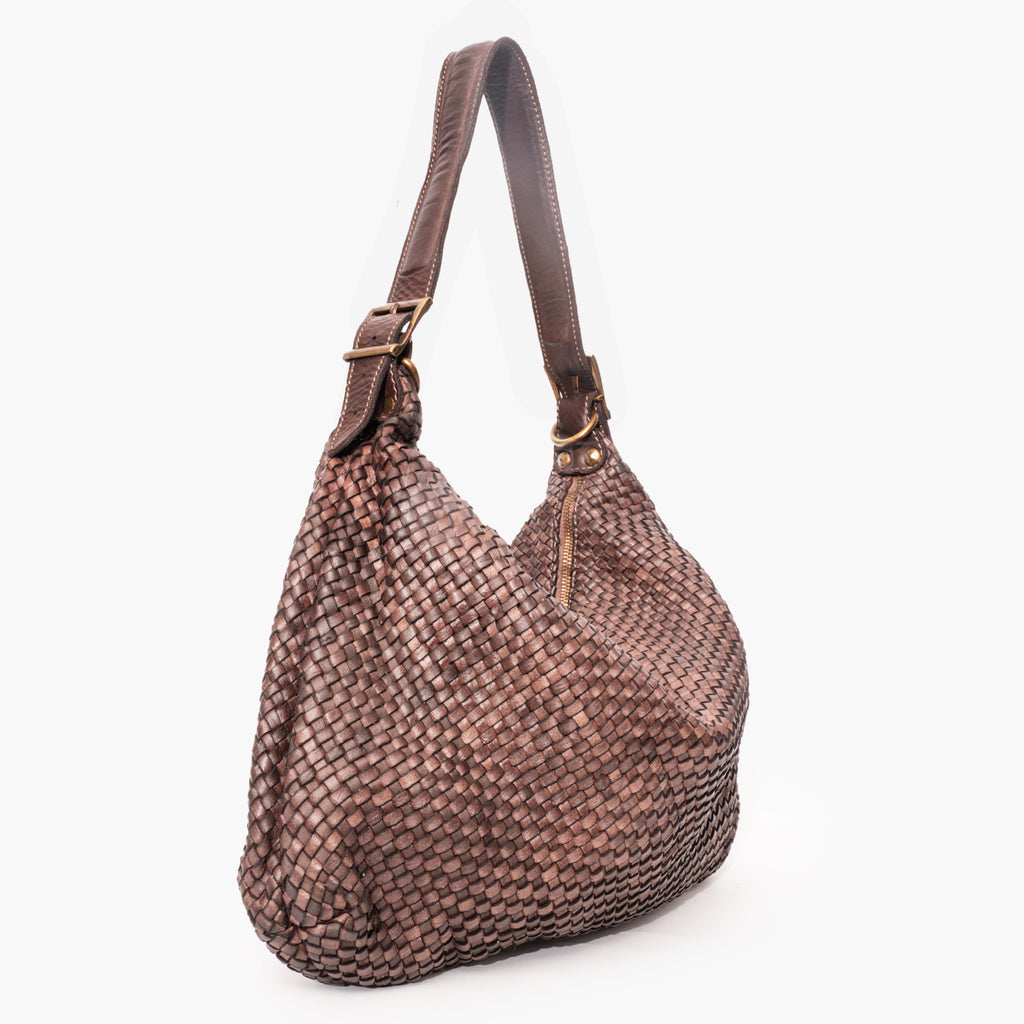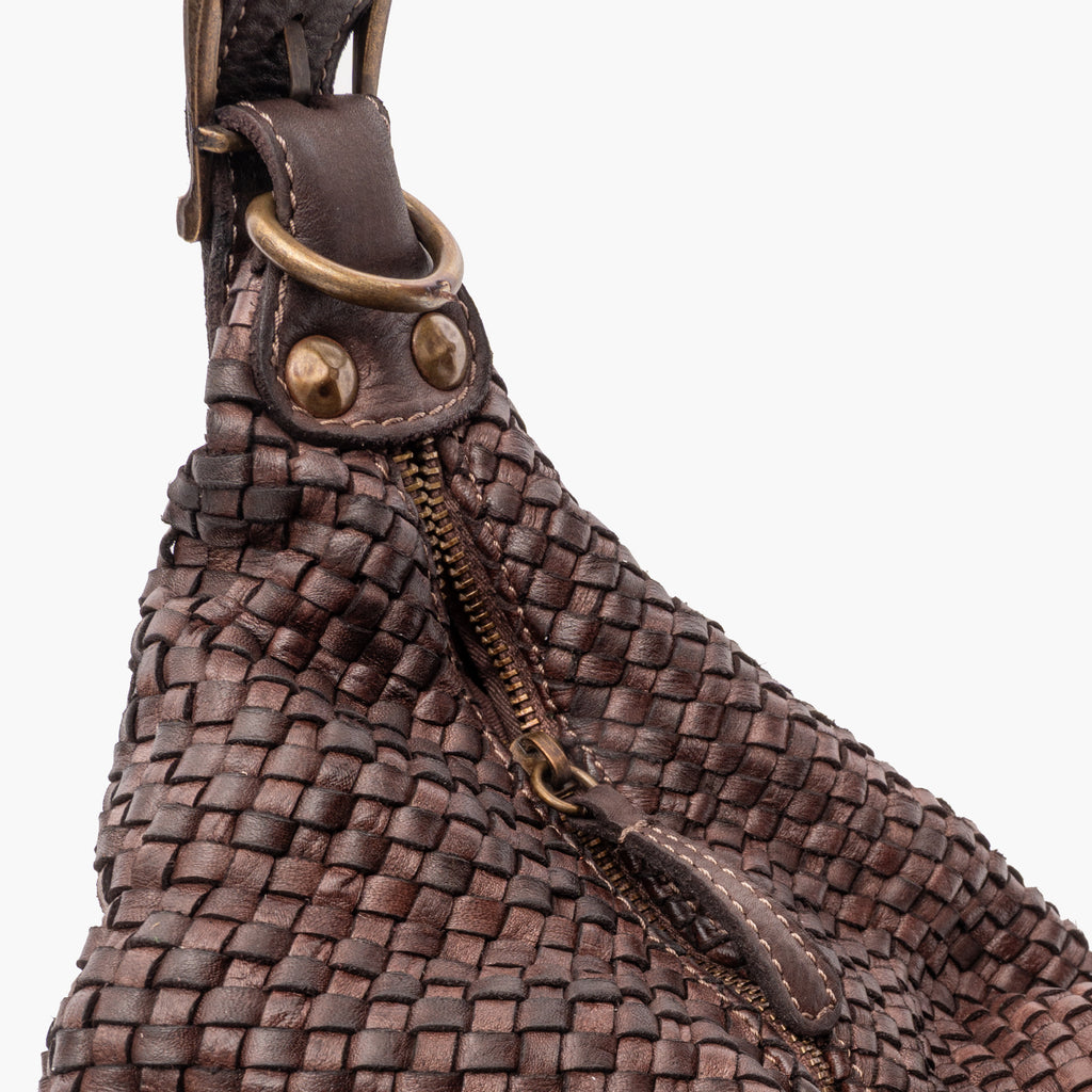 Bolso hobo de piel con aspecto rústico trenzada en color marrón chocolate.