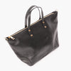 Bolso shopping de piel graneada trenzada en color negro.