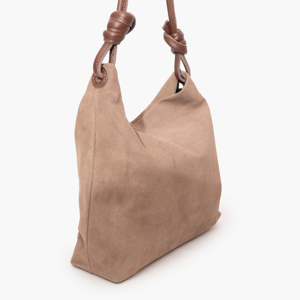 Asa de piel marrón con nudos en los extremos. Largo regulable.
