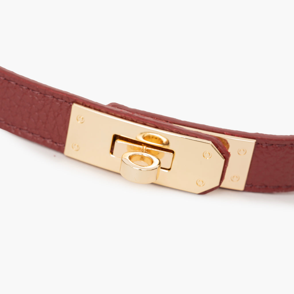 Cinturón de piel graneada burdeos.