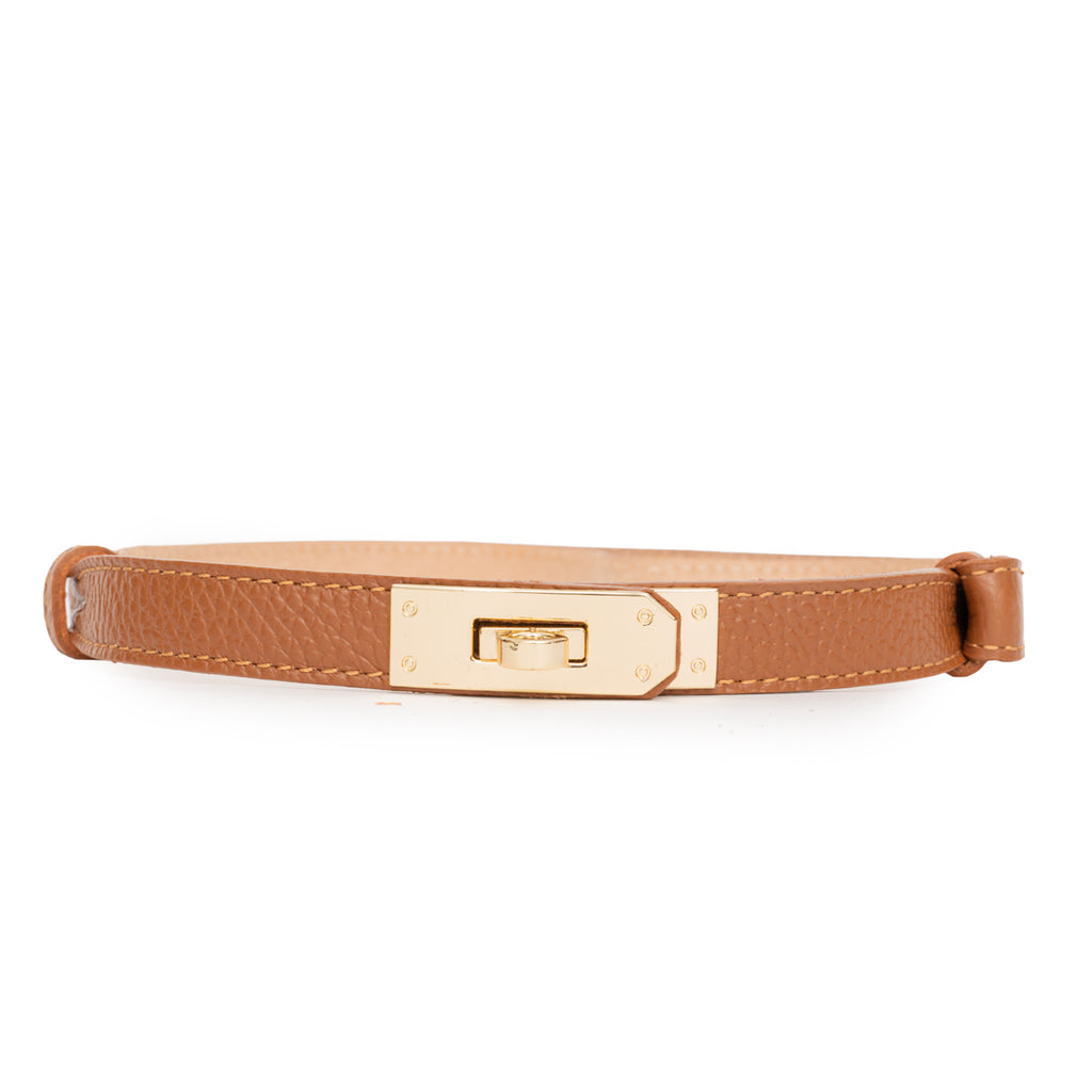 Cinturón de piel graneada color cuero.