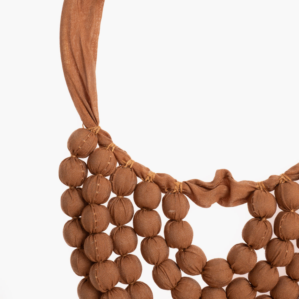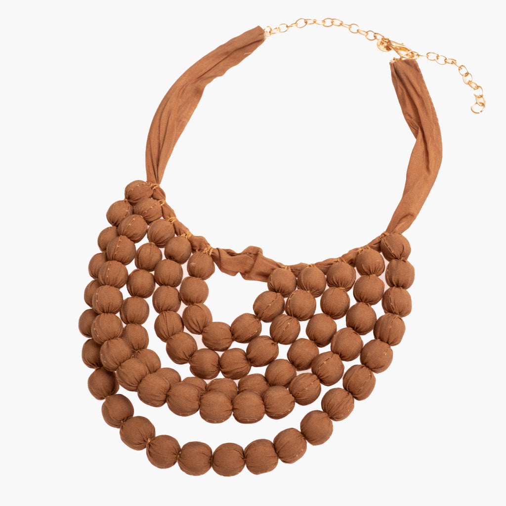 Collar corto con aro metálico forrado de tejido tipo gasa en color taupe.