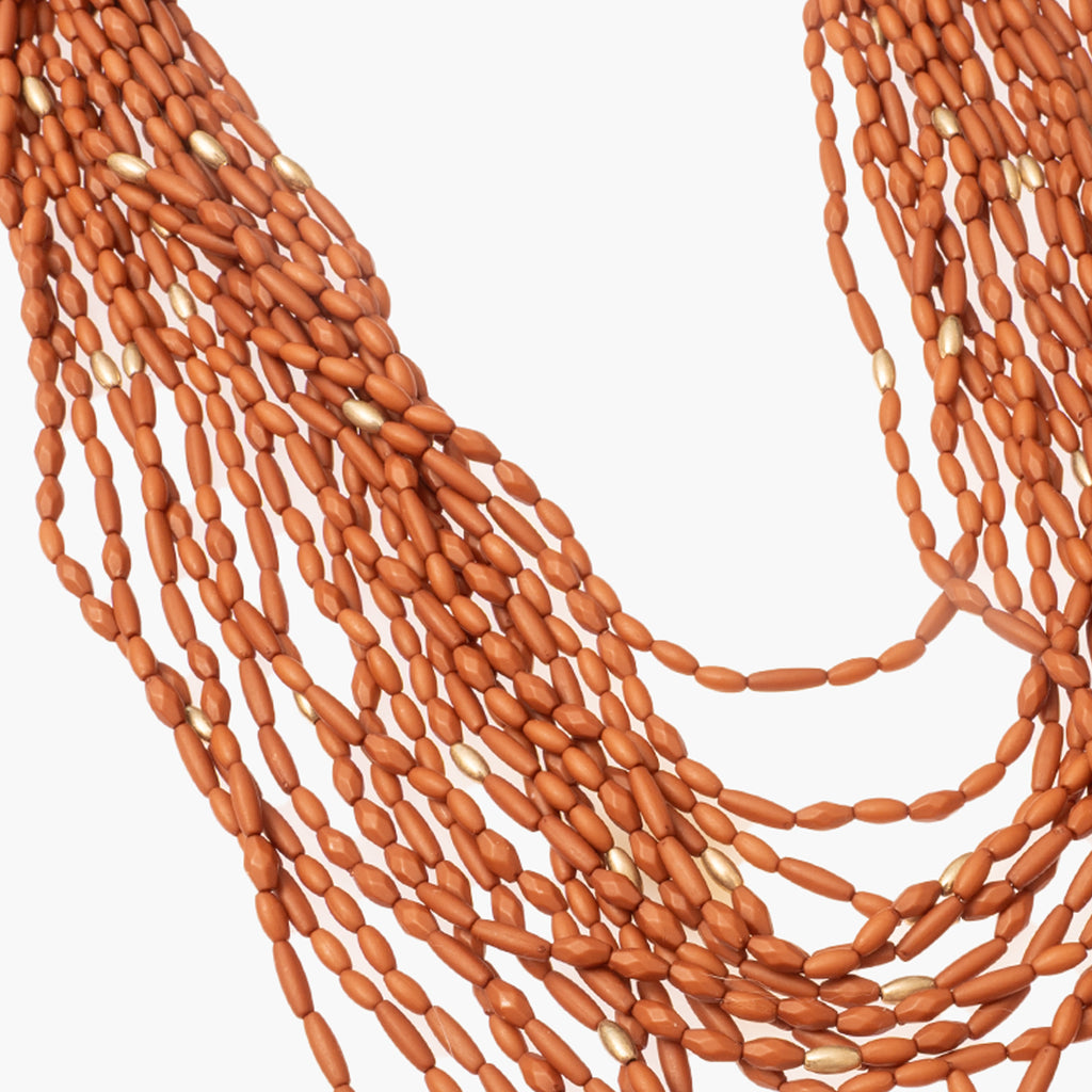 Collar largo de varias vueltas con abalorios de color cuero efecto madera.