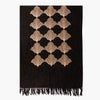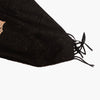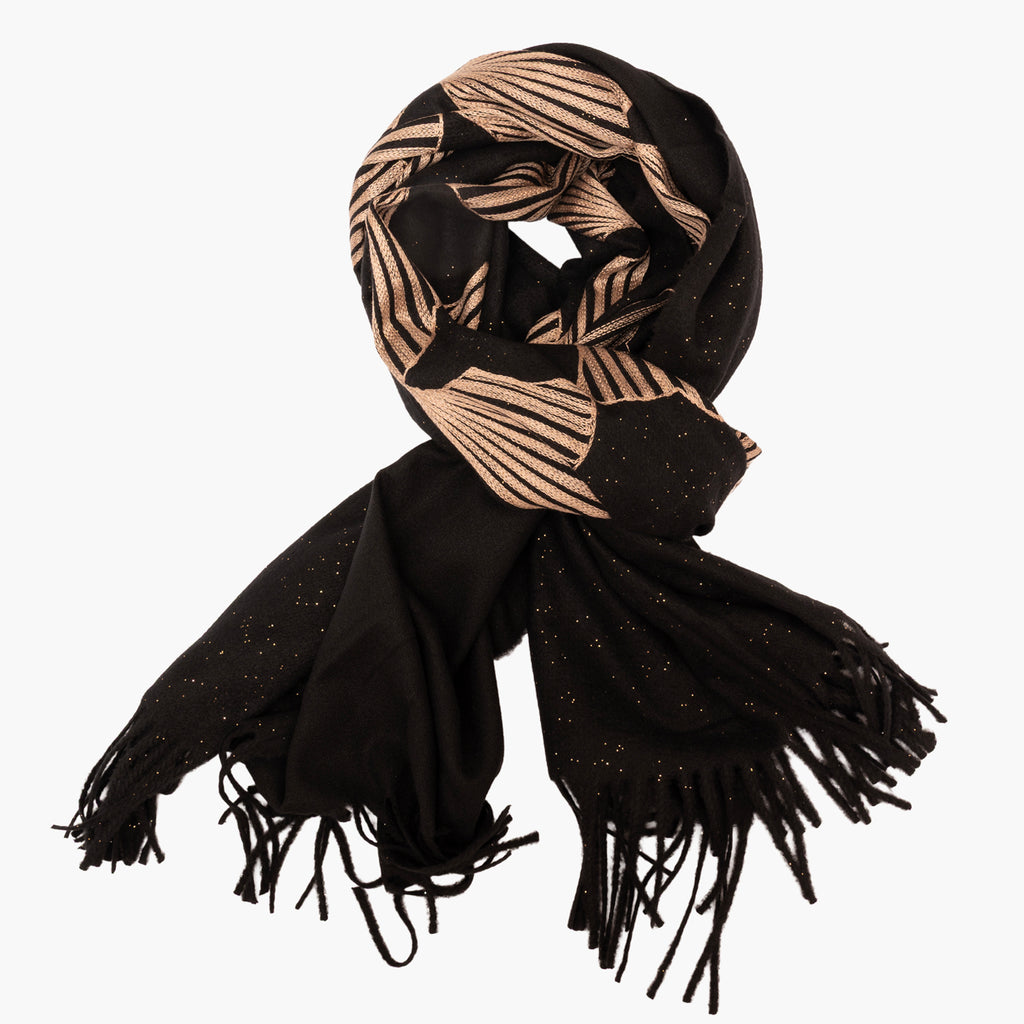 Fular con bordado de hojas en color topo sobre fondo negro.