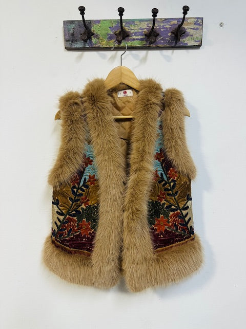 RebajadoCHALECO BORDADO CON PELO MARRÓN