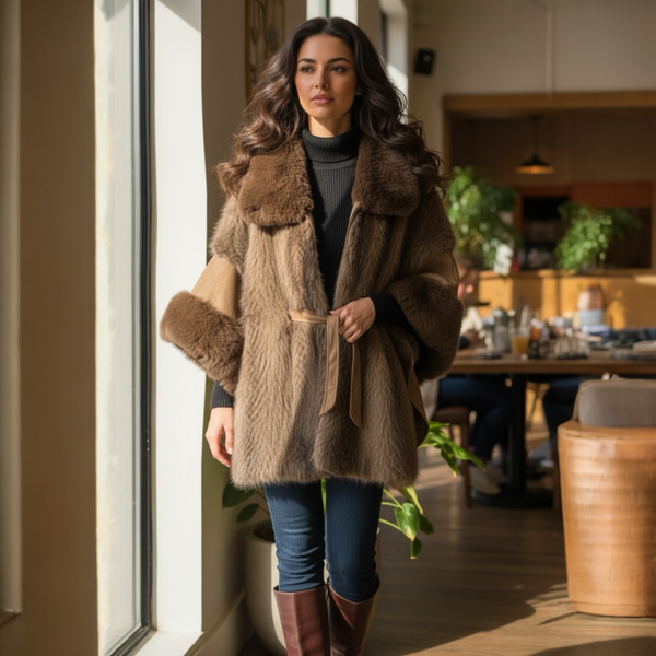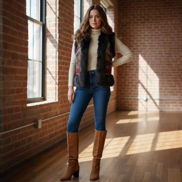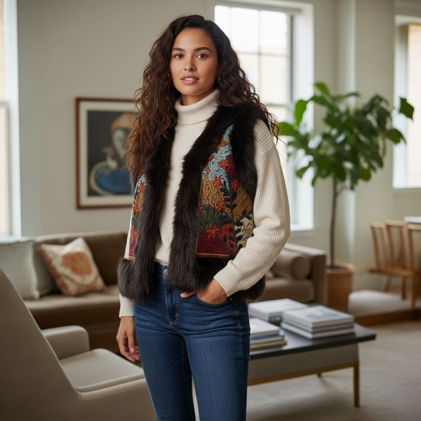€89,99 €69,99CHALECO BORDADO CON PELO MARRÓN