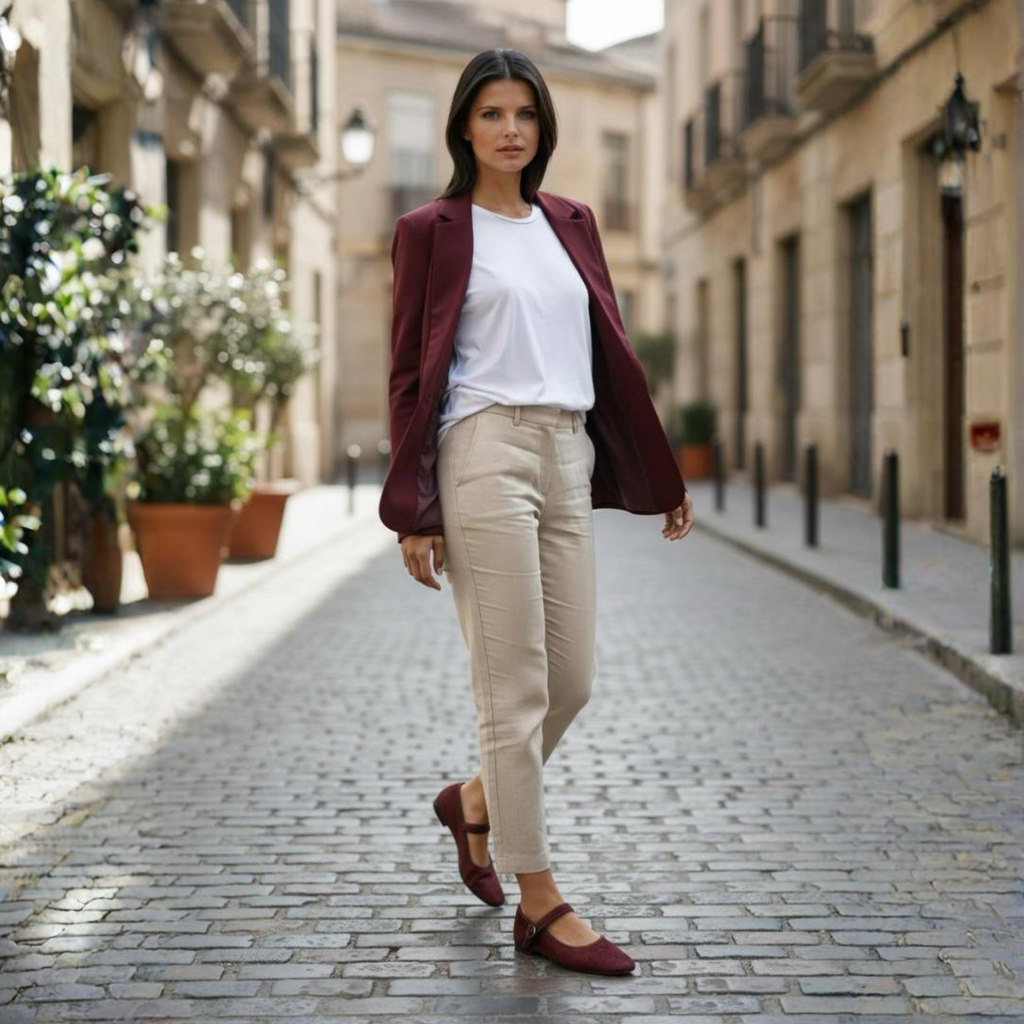 Merceditas de pelo en color burdeos.