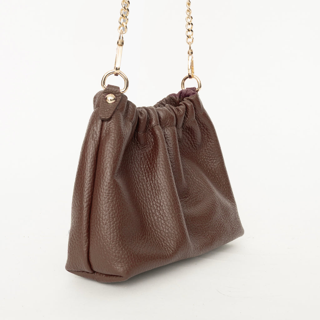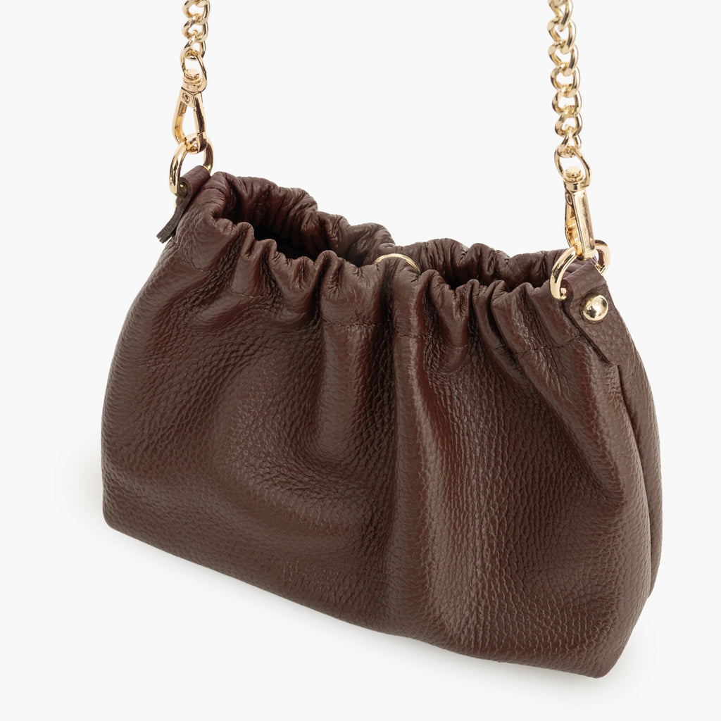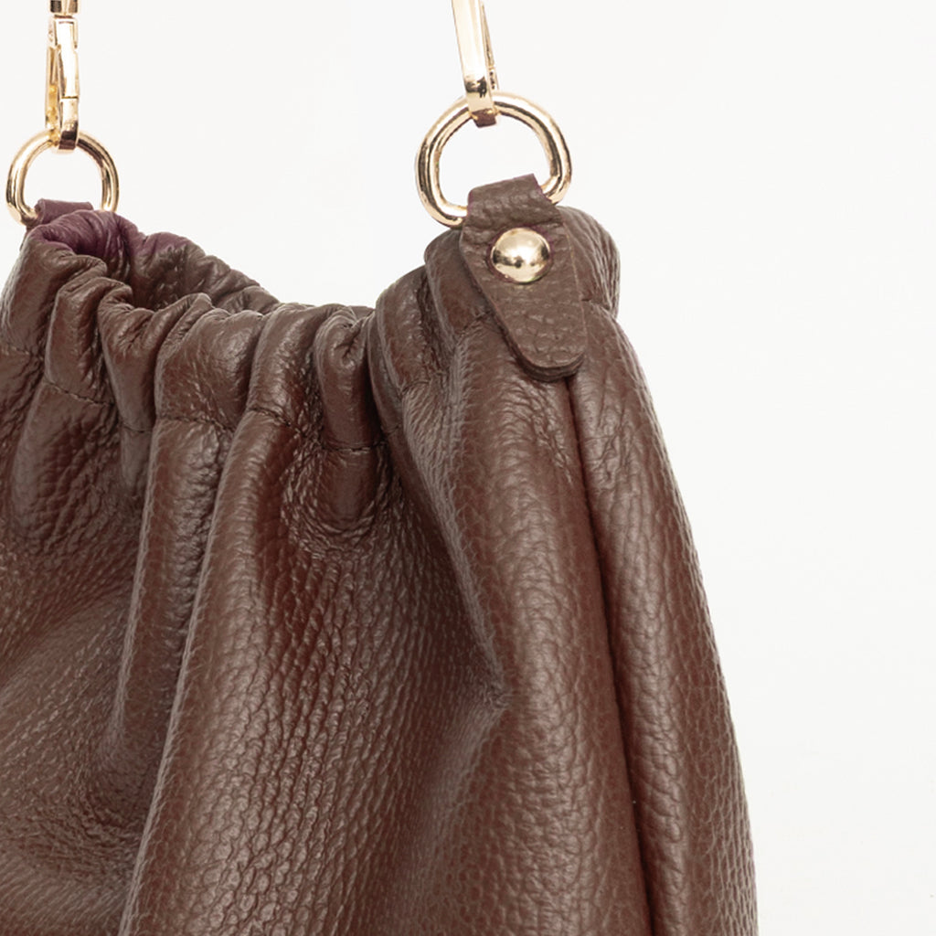 Saquito de piel graneada color marrón.