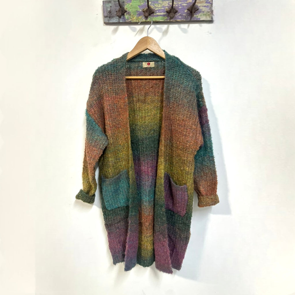 Chaqueta de punto rizado multicolor.