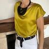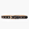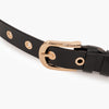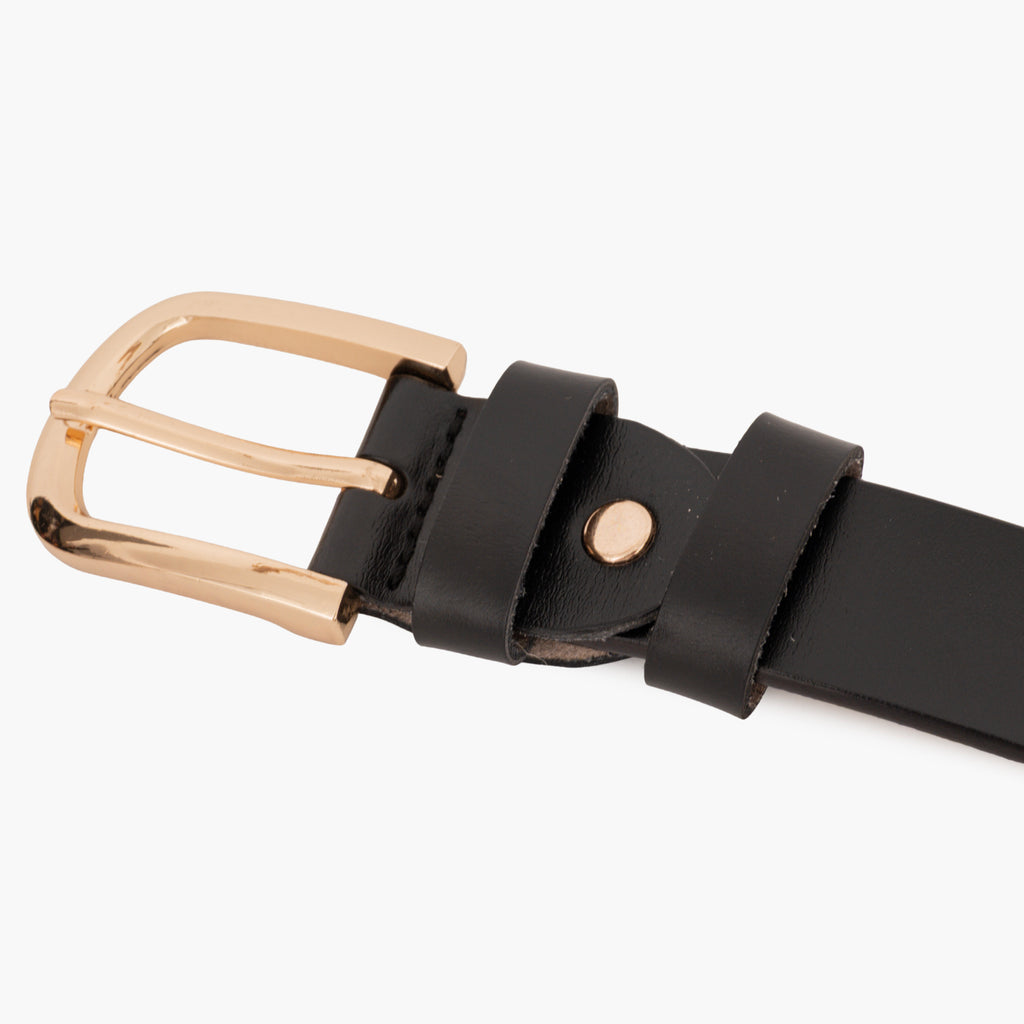 Cinturón de piel de vaqueta color negro con hollados dorados.
