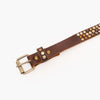 Cinturón de piel rústica en color marrón con tachitas multicolores.