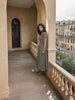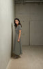 Vestido largo de manga corta con top de punto en color verde kaki.